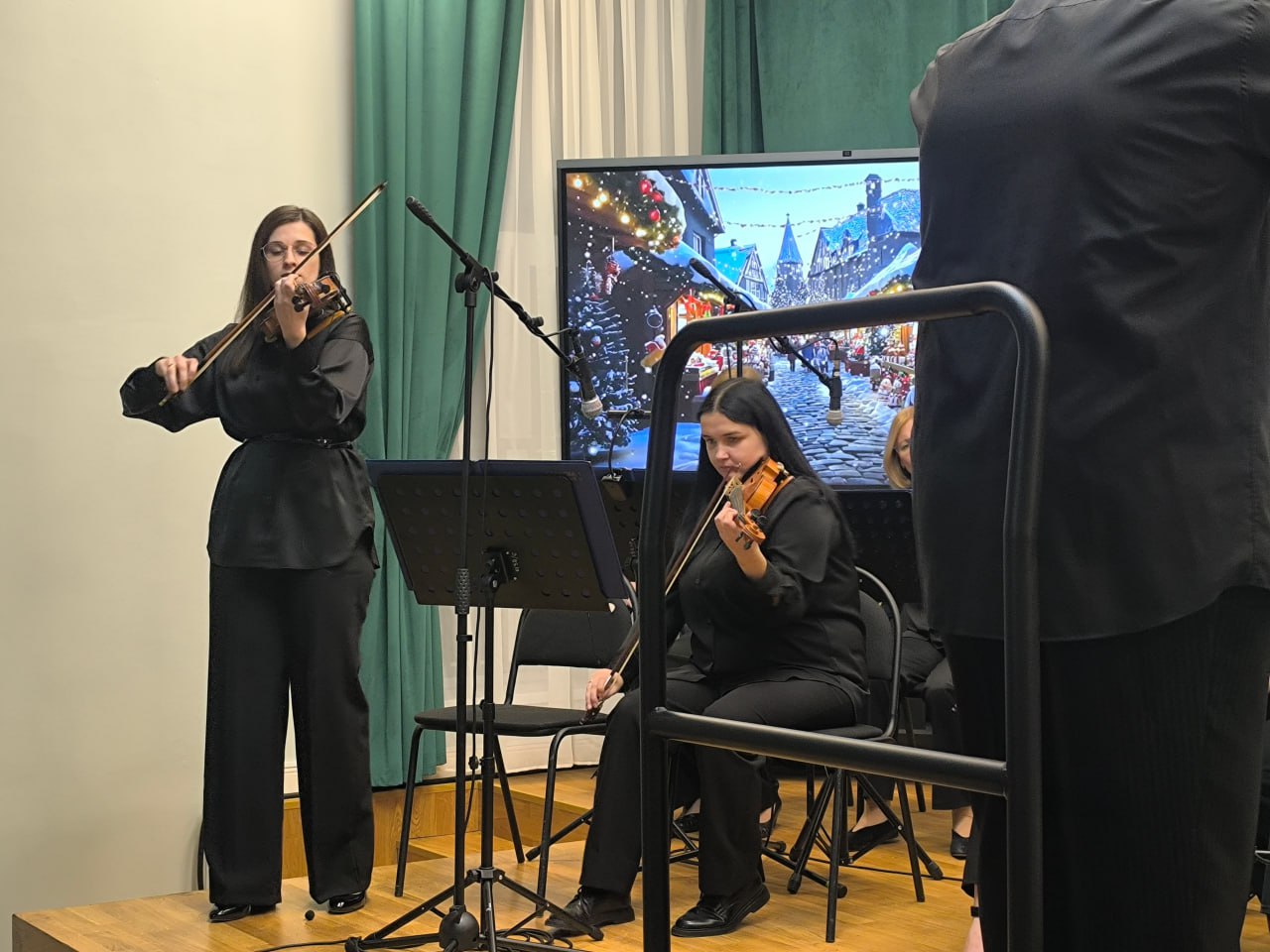 Перед юными слушателями выступил Мариупольской эстрадно-симфонический оркестр (главный дирижёр и художественный руководитель – Василий Шакула). Ребятам представили музыкальную программу «Тёплый вечер холодного декабря». Прозвучали музыкальные произведения разных композиторов: К. Харриса, А. Жобима, А. Бабаджаняна, К. Бахолдина, Ф. Словачека и других.