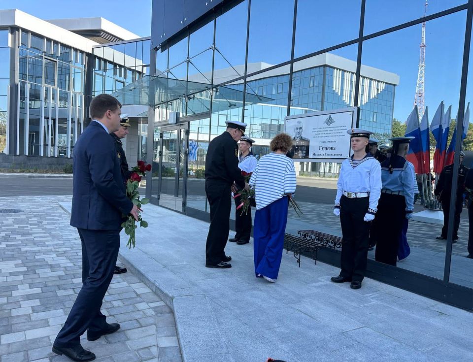 В ознаменование присвоения филиалу НВМУ почётного наименования состоялось открытие памятной доски в честь генерал-майора Михаила Гудкова. Под барабанную дробь оркестра два воспитанника училища сняли мантию с доски, после чего участники мероприятия и гости возложили к ней цветы.