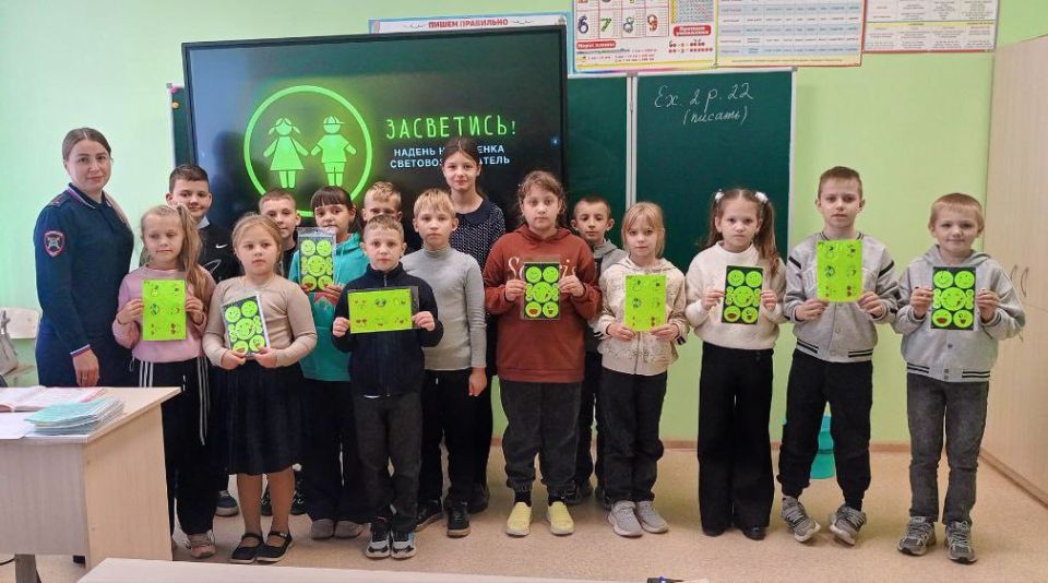 В ходе встречи со школьниками сотрудники Госавтоинспекции рассказали им о важности использования светоотражающих элементов на одежде и рюкзаках, а также напомнили основные правила безопасного поведения на дороге.