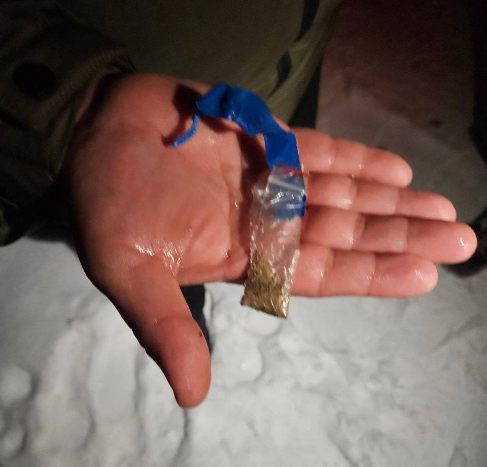 В ходе личного досмотра подозреваемого правоохранители обнаружили в его телефоне координаты закладки. Прибыв по указанному месту, стражи правопорядка изъяли из тайника сверток с измельченным растительным веществом зелёного цвета, обмотанный синей изоляционной лентой.