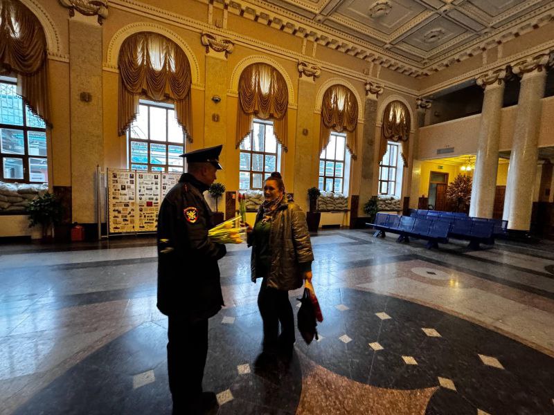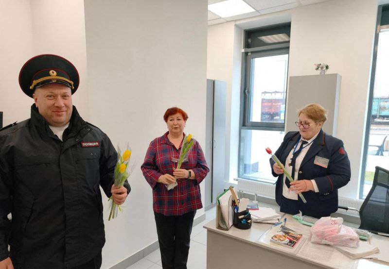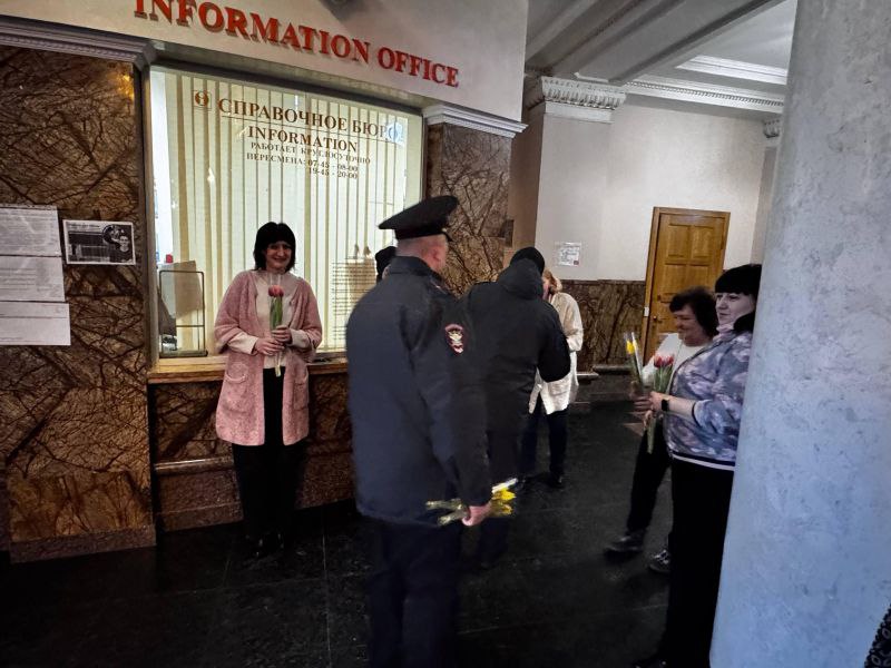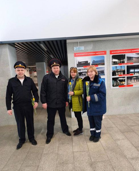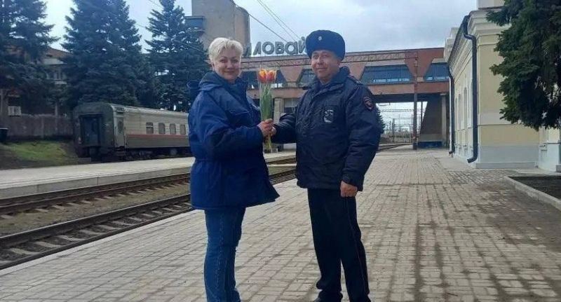 В преддверии Международного женского дня транспортные полицейские Донецкого линейного отдела МВД России на транспорте присоединились к всероссийской акции «8 Марта – в каждый дом». Мужчины из линейного отдела поздравили работниц и женщин-пассажирок железнодорожных вокзалов Донецка, Мариуполя и Иловайска с наступающим праздником.