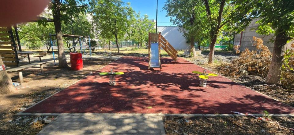 На левобережье на пересечении улицы Орджоникидзе с Комсомольским бульваром специалисты «Модуль-Центра» вывозят с территории будущей зоны отдыха строительный мусор и укладывают тротуарную плитку.