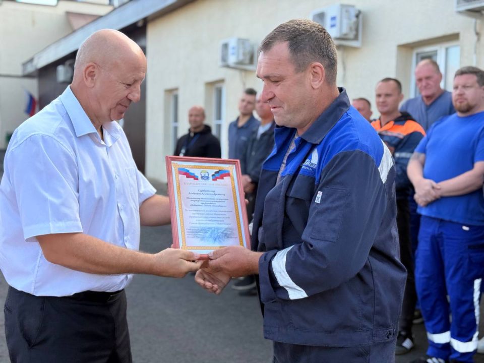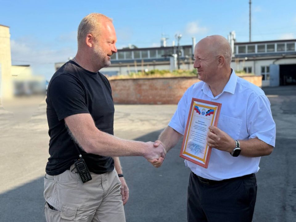 Руководитель Представительства Санкт-Петербурга в Мариуполе Олег Моргун вручил благодарственные письма от имени главы Мариупольского городского округа Антона Кольцова специалистам из Санкт-Петербурга.