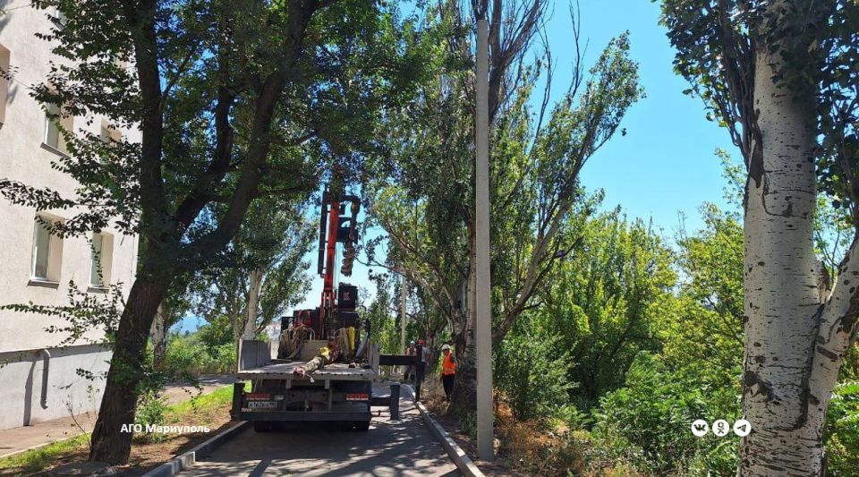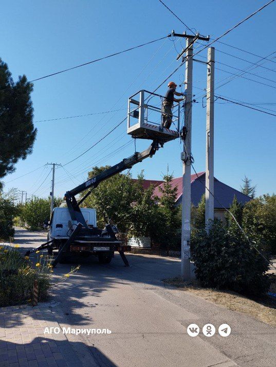 1 980 метров нового самонесущего изолированного провода работники аварийно-диспетчерской службы и районных участков МУП «Мариупольгорсвет» проложили по улицам Апатова, Крановой, Уссурийской и Долгополова, переулкам Курчатова и Космическому, проезду Курчатова.