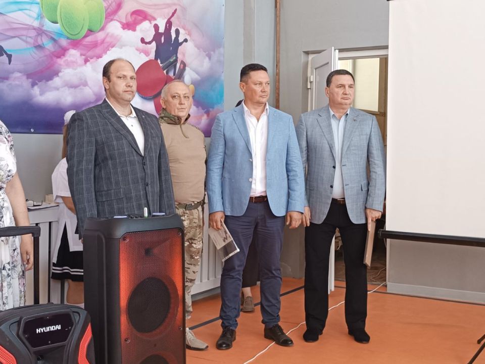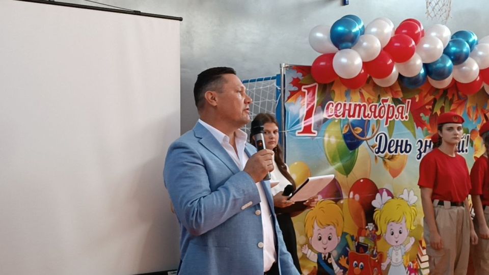На линейке поздравил маленьких первоклашек и будущих выпускниковзаместитель министра здравоохранения ДНР Игорь Борисович Коваленко. В рамках Года защитника Отечества прозвучали патриотические стихи и песни.