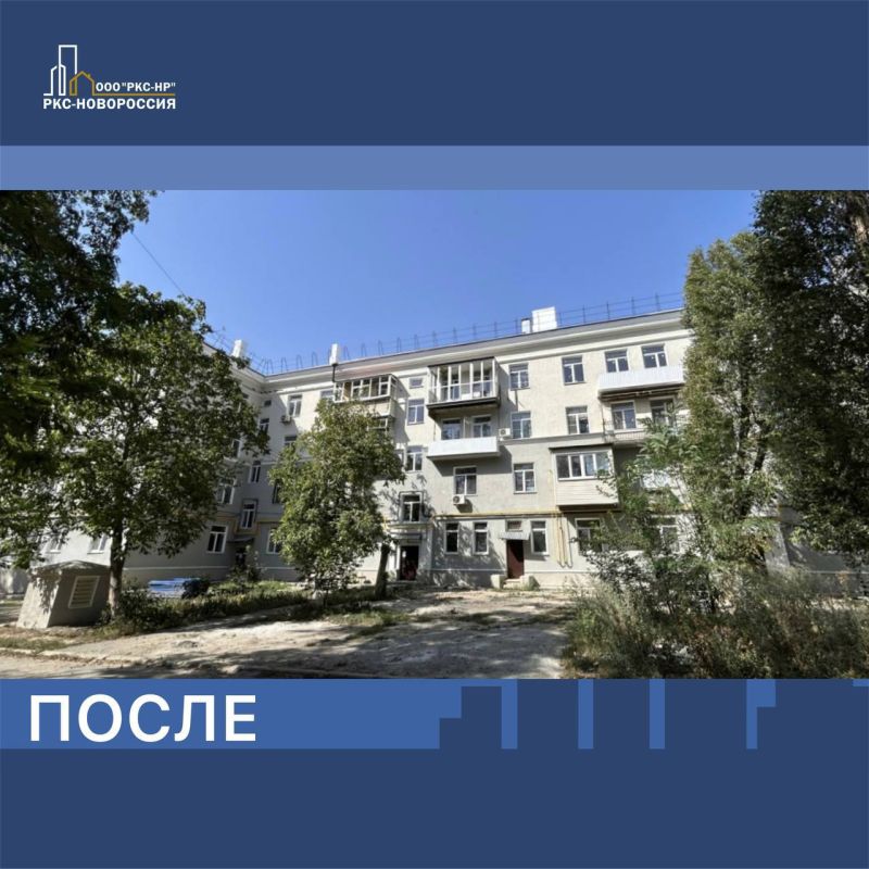 Строителями был восстановлен конструктив здания, произведена замена кровли, оконных и дверных блоков. Отремонтированы места общего пользования, фасад и отмостка дома. Восстановлена работа всех инженерных систем.