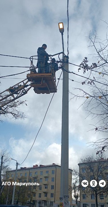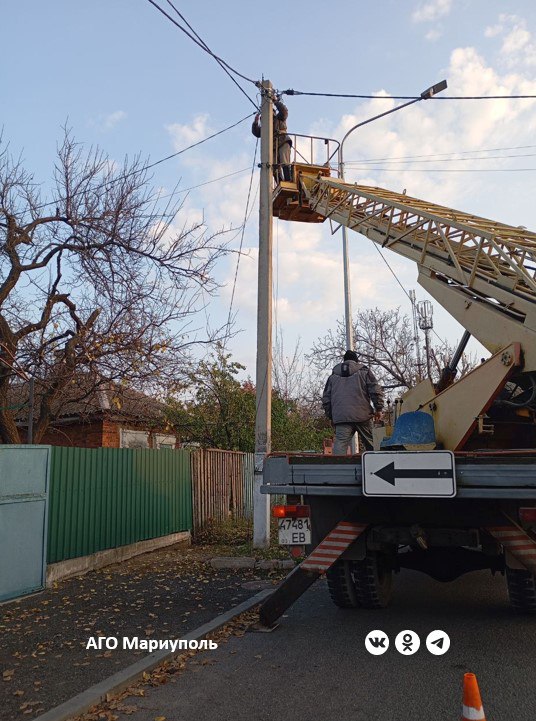 Сотрудники МУП «Мариупольгорсвет» с привлечением 8 единиц спецтехники смонтировали и отремонтировали 470 метров кабеля, установили 19 современных светильников, демонтировали 660 метров неремонтопригодного провода и 17 вышедших из строя фонарей, проинспектировали шкафы управления освещением.