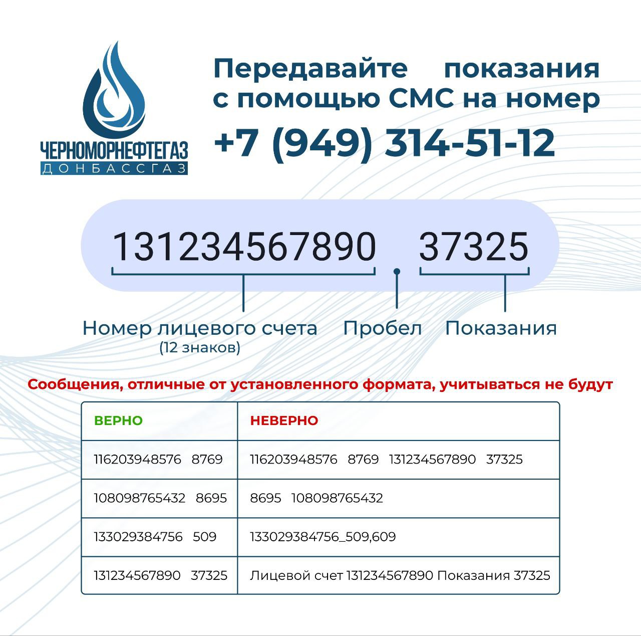 Для Вашего удобства "Донбассгаз" филиал ООО "ЧМНГ" запустил сервис передачи показаний прибора учета газа с помощью СМС-сообщений.
