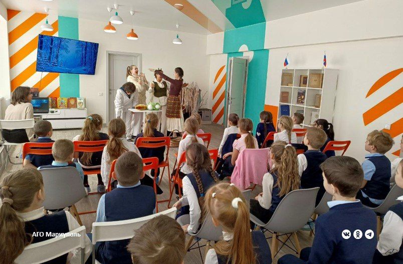 Театрализованное игровое мероприятие «Краски осени в русских сказках» для учащихся вторых классов СШ №7 организовали в Центре популяризации русского языка и культуры «Русское Слово» при библиотеке им. Г.Х. Андерсена.