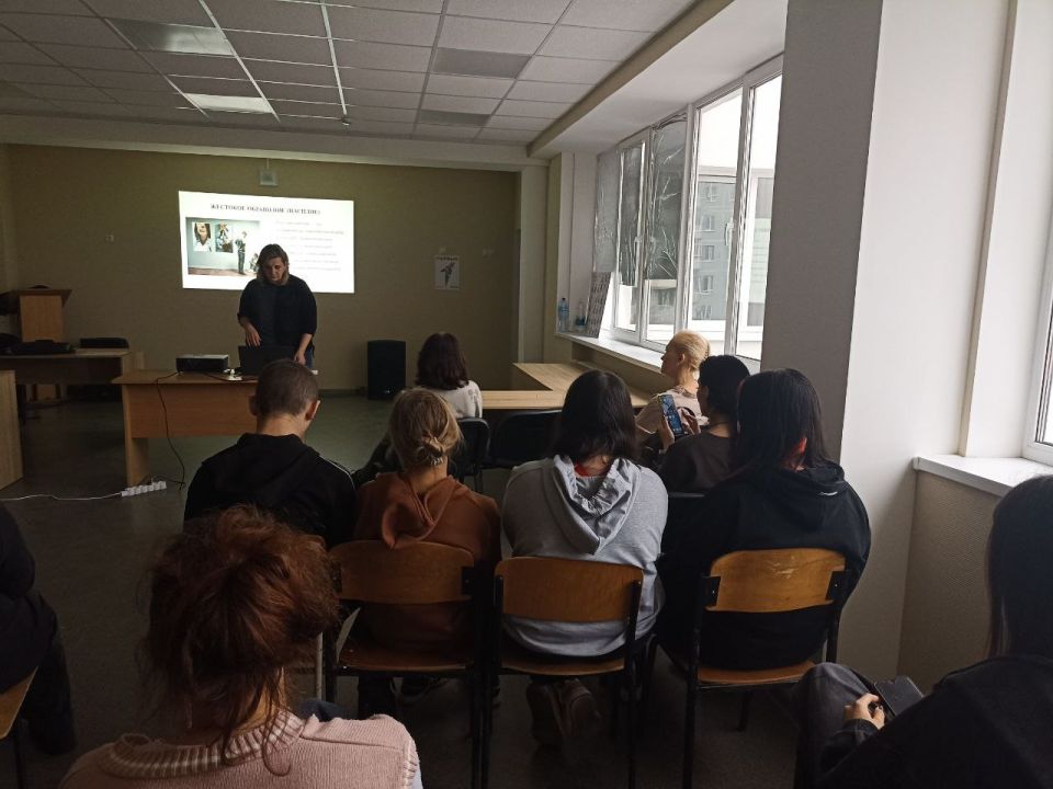 Специалисты отдела по работе семьей с детьми филиала № 20 Республиканского центра по предоставлению мер социальной поддержки Орджоникидзевского внутригородского района города Мариуполь провели мероприятие в Мариупольском промышленно-технологическом техникуме. В нем приняли участие студенты I-III курсов.