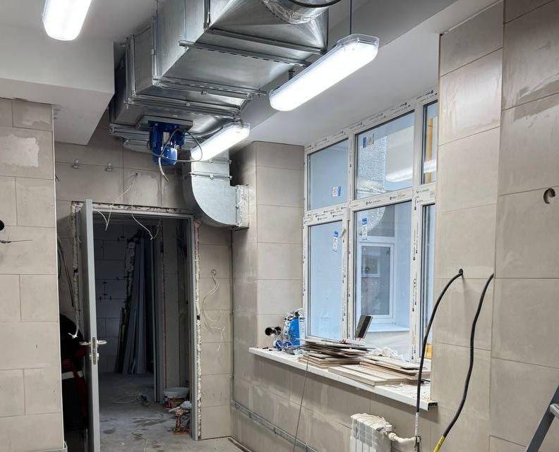 Рабочие завершили монтаж и подключение вентиляционного оборудования в детском саду №76 города Мариуполя.