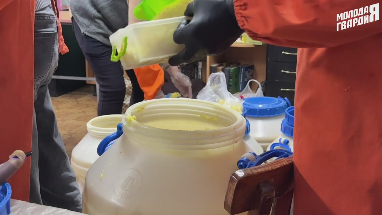 Совместно с благотворительным фондом «Пища жизни» молодогвардейцы раздали 440 литров горячей каши и 1500 хлебобулочных изделий.