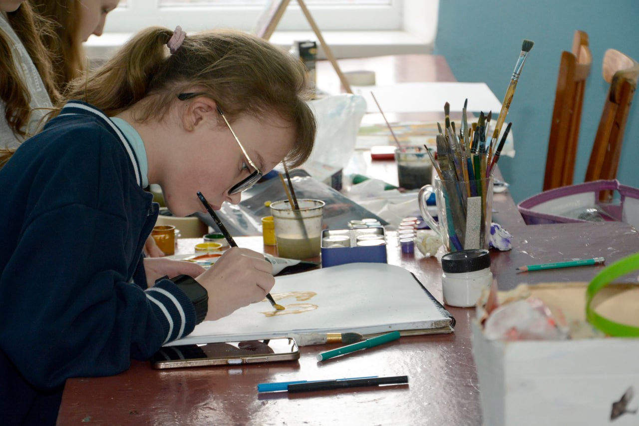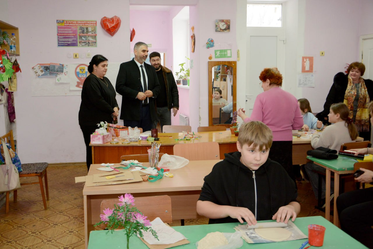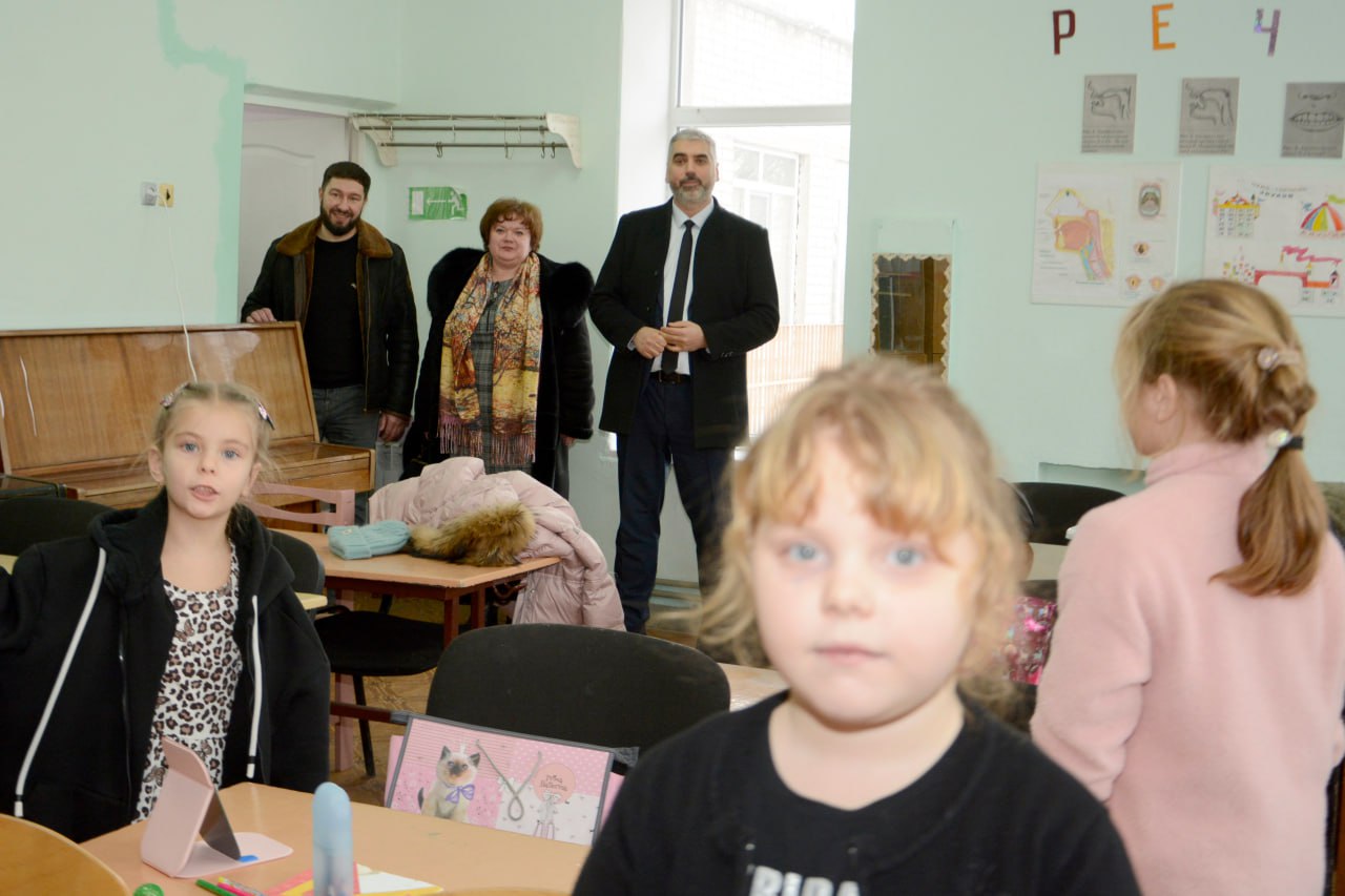 Вместе с главой Новоазовского округа Василием Овчаровым приехали к коллективу местного учреждения допобразования. Место сейчас уникальное: из-за ремонта одной из школ здесь теперь занимаются не только творчеством, но и обычными уроками. Нагрузка колоссальная - больше 600 детей под одной крышей!