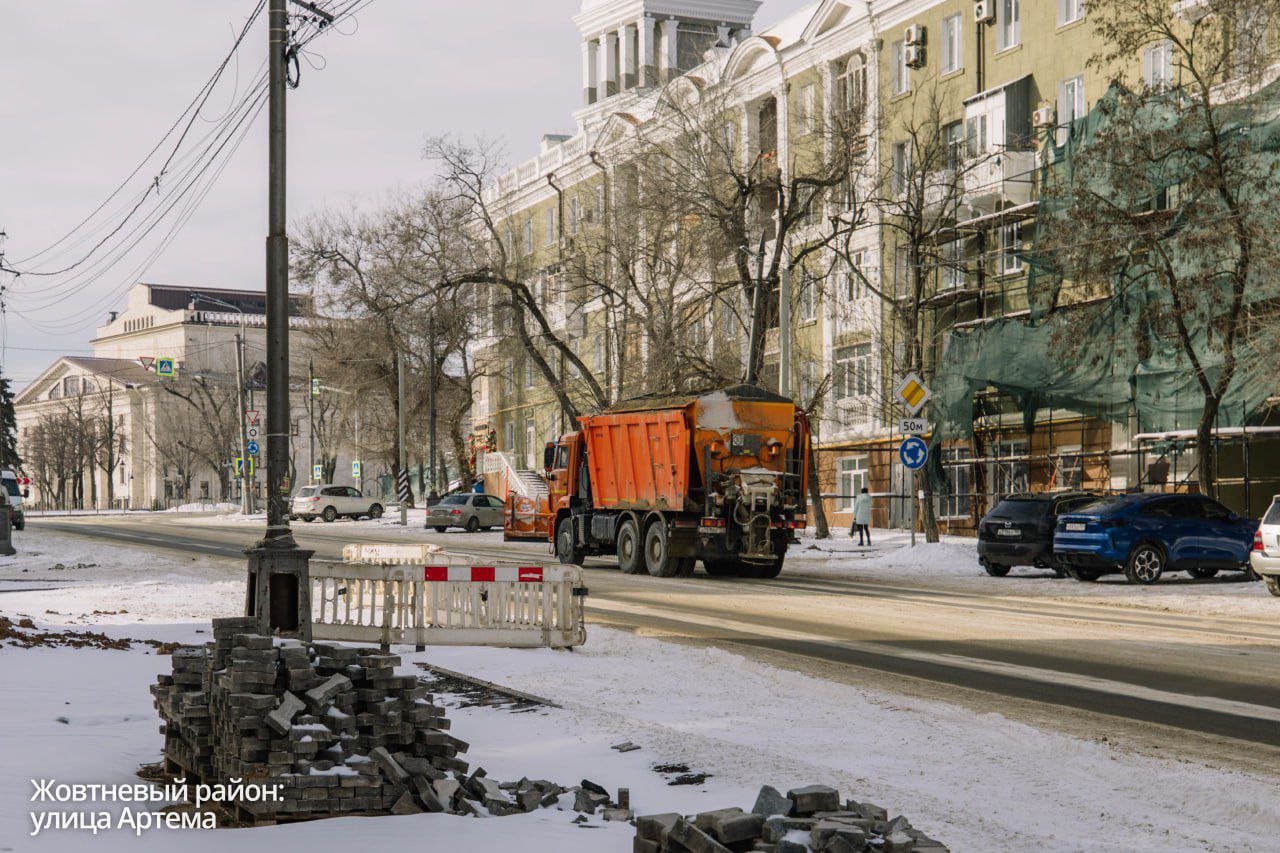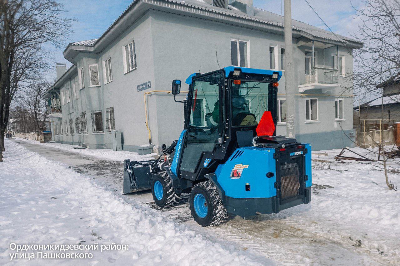 В частности, «Митраксы» расчищают пешеходные зоны на проспекте Победы, улице Пашковского и бульваре Богдана Хмельницкого. Мини-трактор работает на улице Артема.