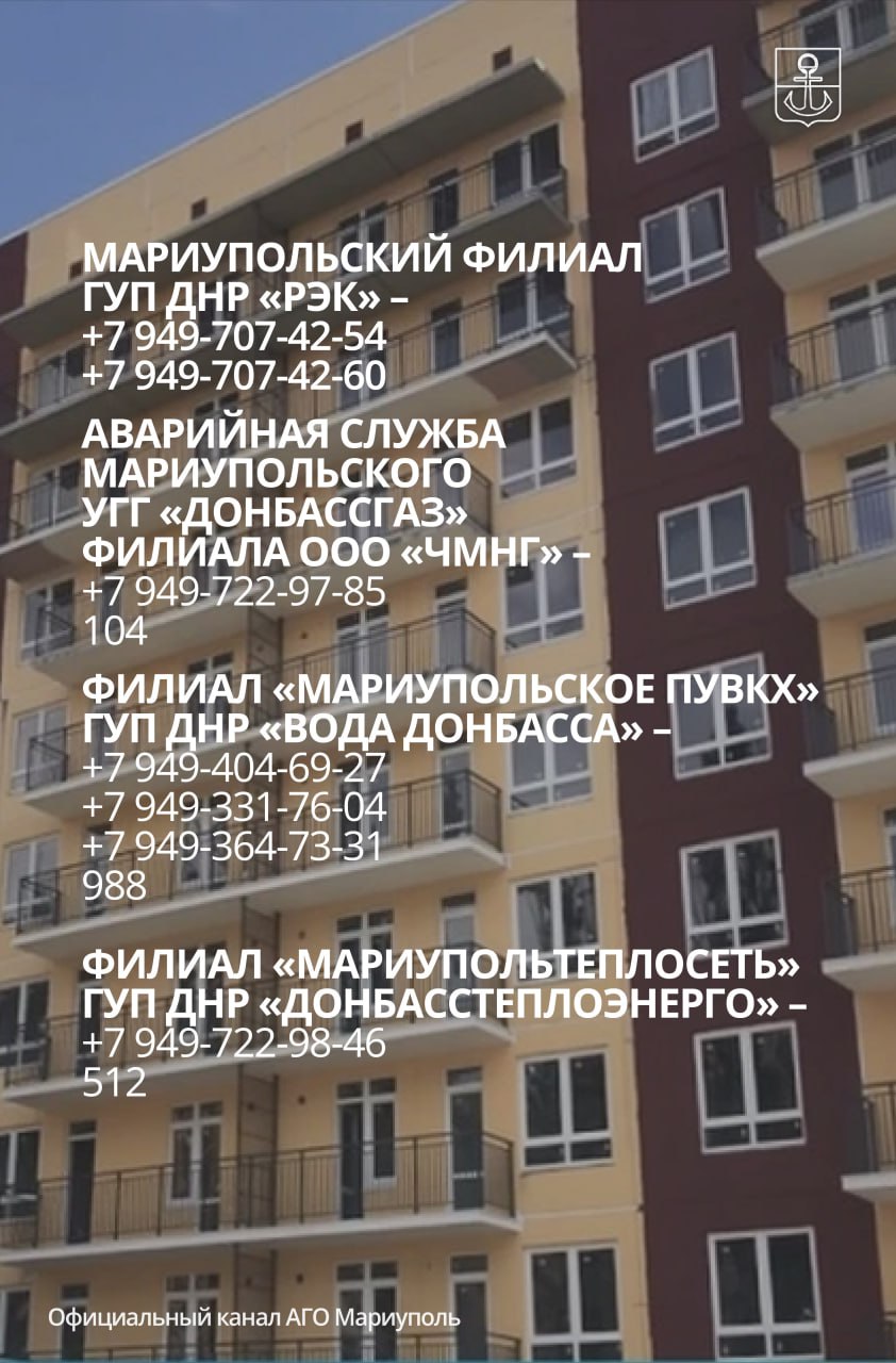 Номера телефонов диспетчерских служб ресурсопоставляющих организаций в Мариуполе собрали в инфокарточках