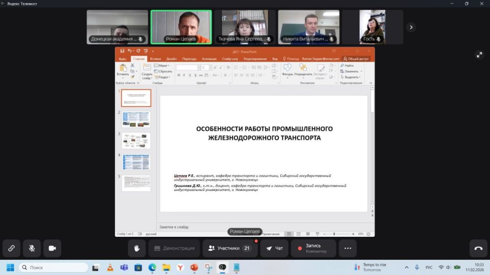«Проведение конференции именно в эти дни — дань уважения российской научной школе и возможность показать, что транспортная наука сегодня находится на передовой цифровизации и технологического суверенитета», — отметил модератор конференции, проректор по научной работе и инновационному развитию Донецкой академии транспорта Никита Витальевич Володарец.
