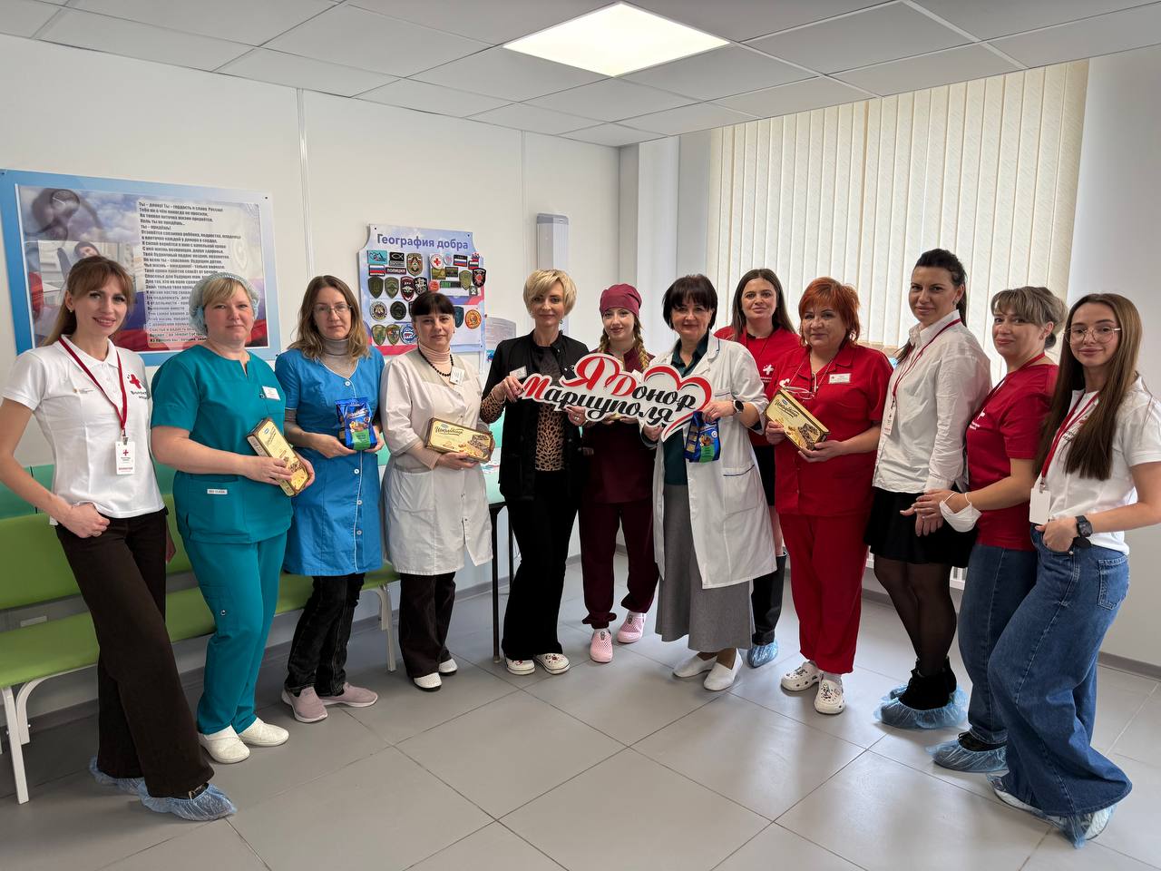 В рамках Всероссийской акции «Вам, Любимые!» волонтеры-медики при поддержке Мариупольского штаба #МЫВМЕСТЕ подготовили особенный сюрприз для своих коллег — медработников станции переливания крови.
