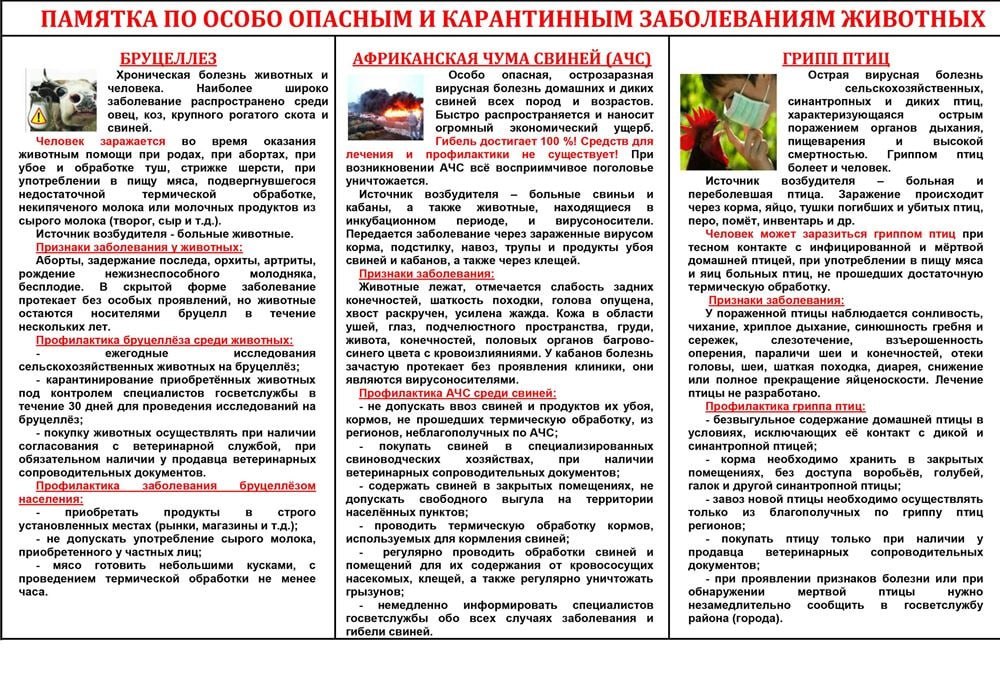Памятка владельцам сельскохозяйственных и домашних животных