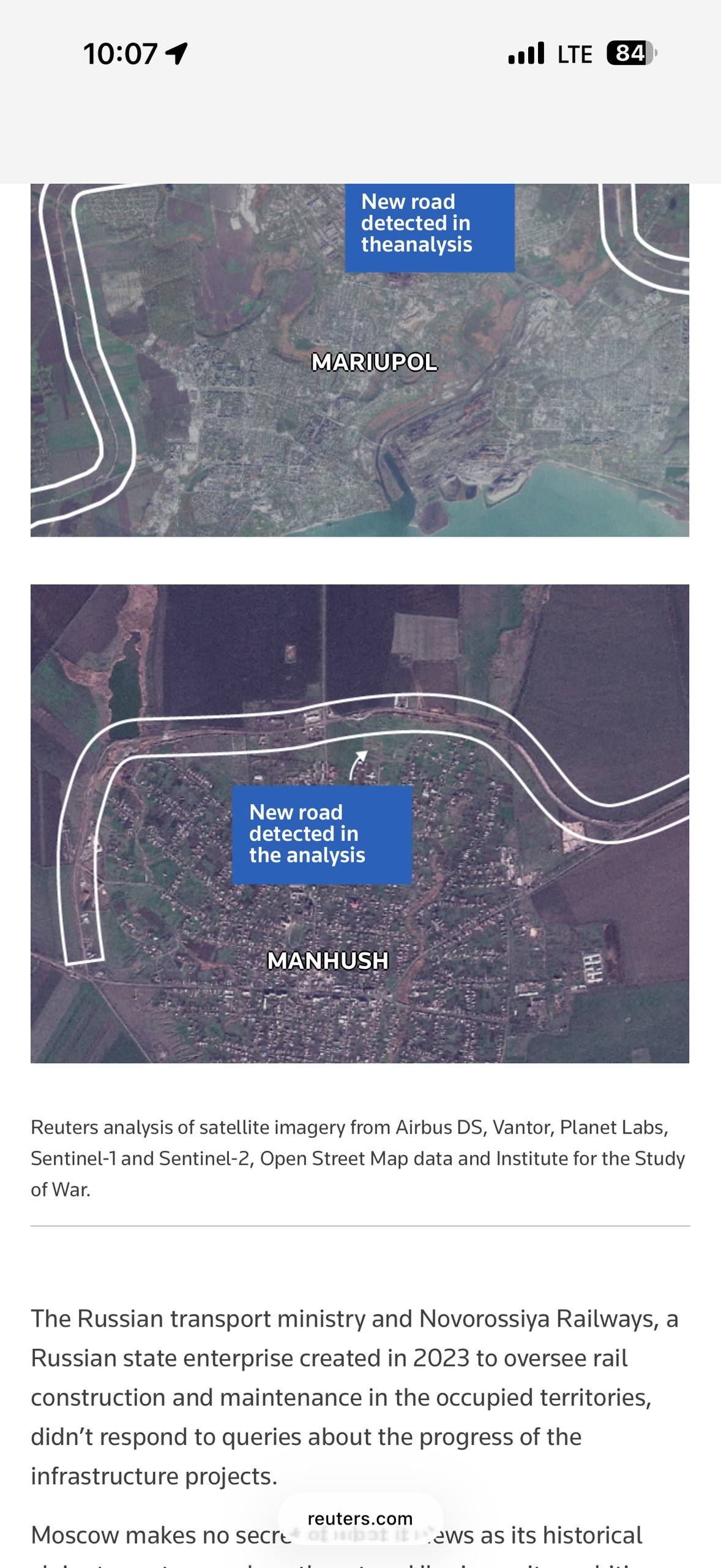 Спутниковые снимки, проанализированные Reuters, зафиксировали активную фазу укладки путей — работы идут даже там, где их сложно заметить невооружённым глазом.