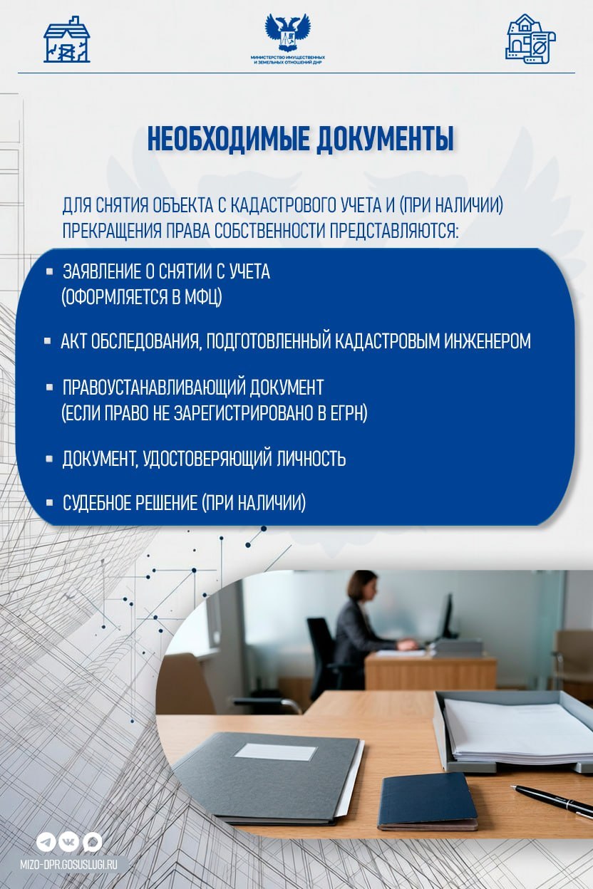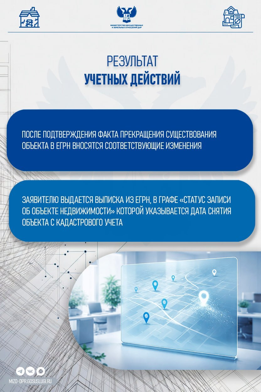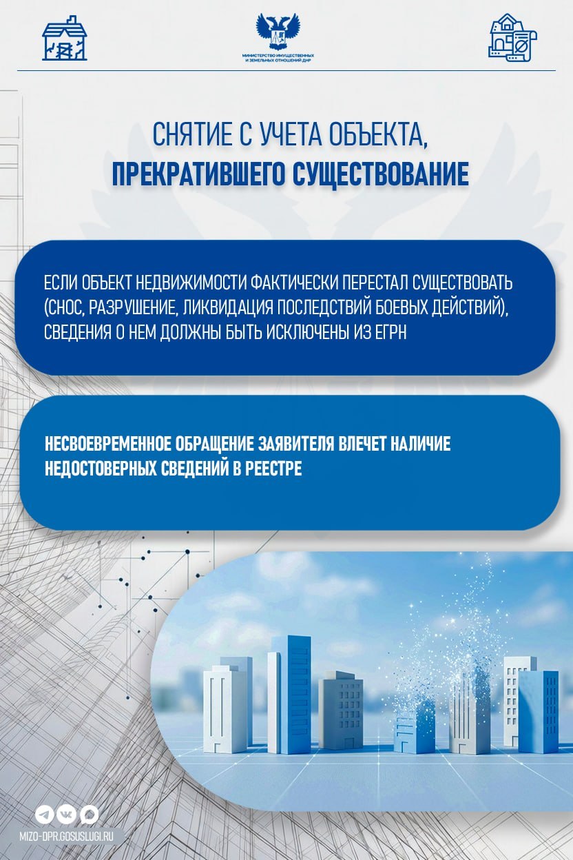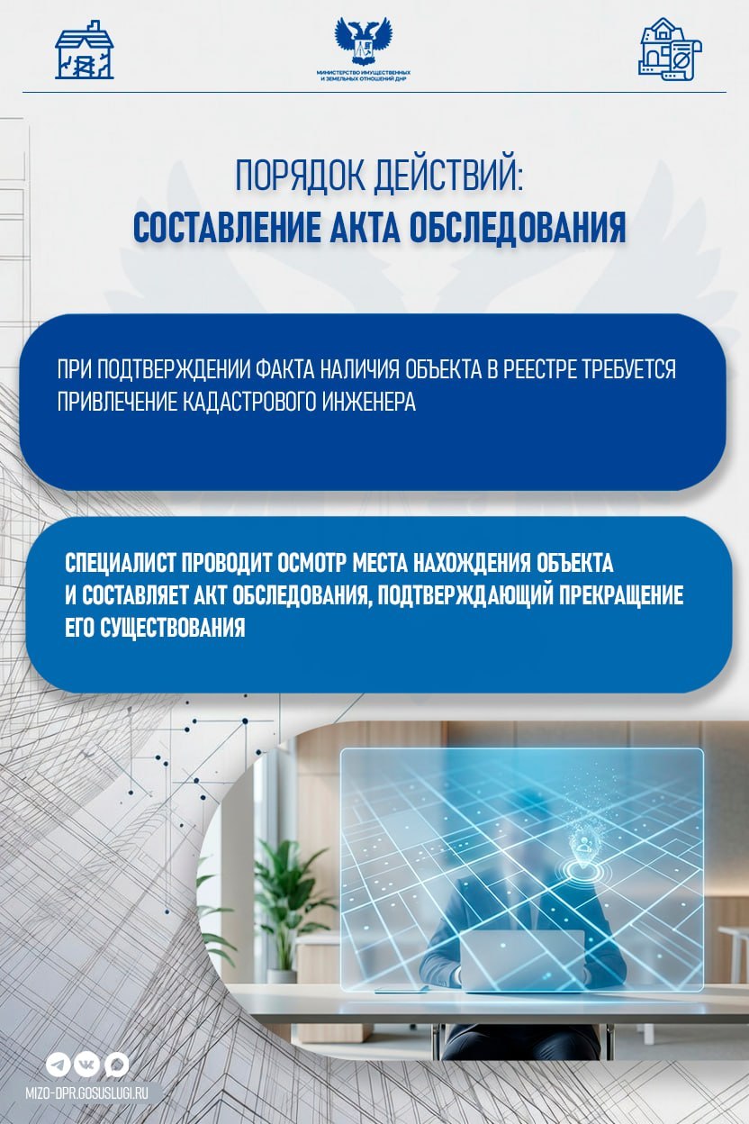 Объекты капитального строительства, утратившие свои свойства в результате естественного износа, природного катаклизма, пожара или боевых действий, подлежат снятию с государственного кадастрового учета. Информация о прекращении существования объекта вносится в ЕГРН на основании акта обследования, составленного кадастровым инженером.