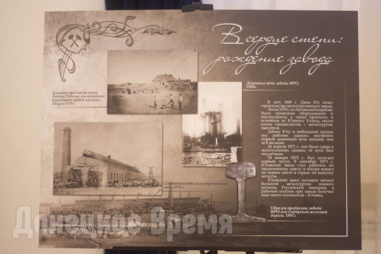 Выставка рассказывает о предпосылках появления Юзовки, ее стремительном развитии, уникальной архитектуре, сочетающей европейский модерн с практичностью промышленных сооружений, технологических прорывах и социальных изменениях.
