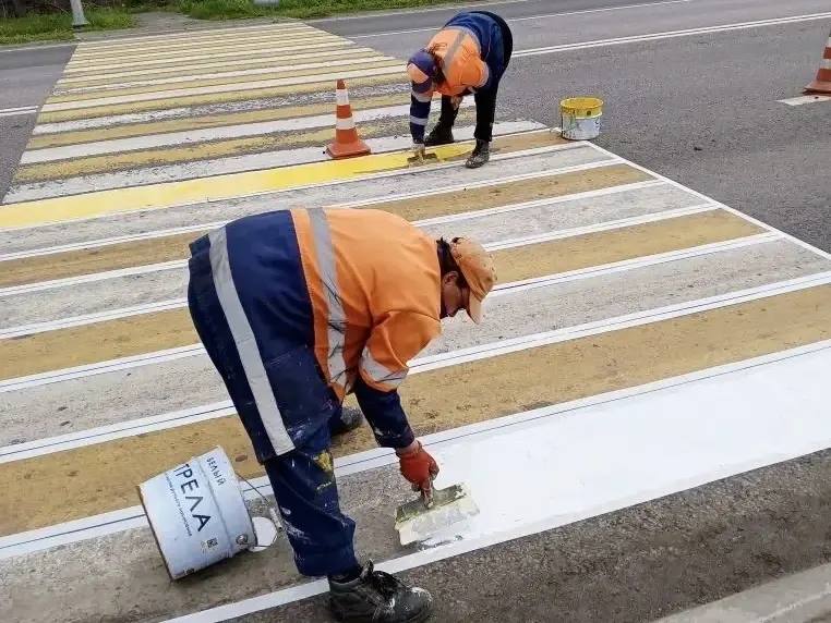 нанесли горизонтальную разметку на пешеходном переходе на автодороге /Донецк - Новоазовск - Седово/ – Подгорное и Донецк - Харцызск - Амвросиевка - до границы Ростовской области