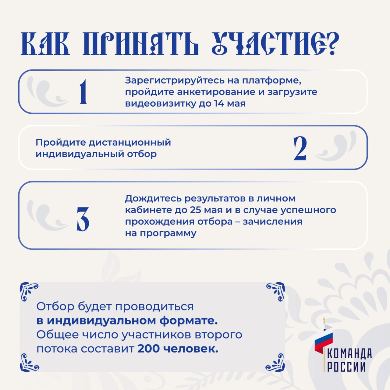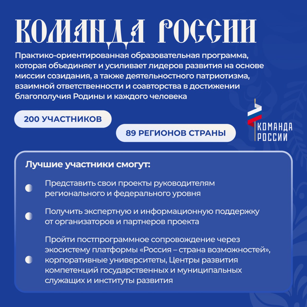 Узнать подробности и подать заявку можно на сайте проекта «Команда России».