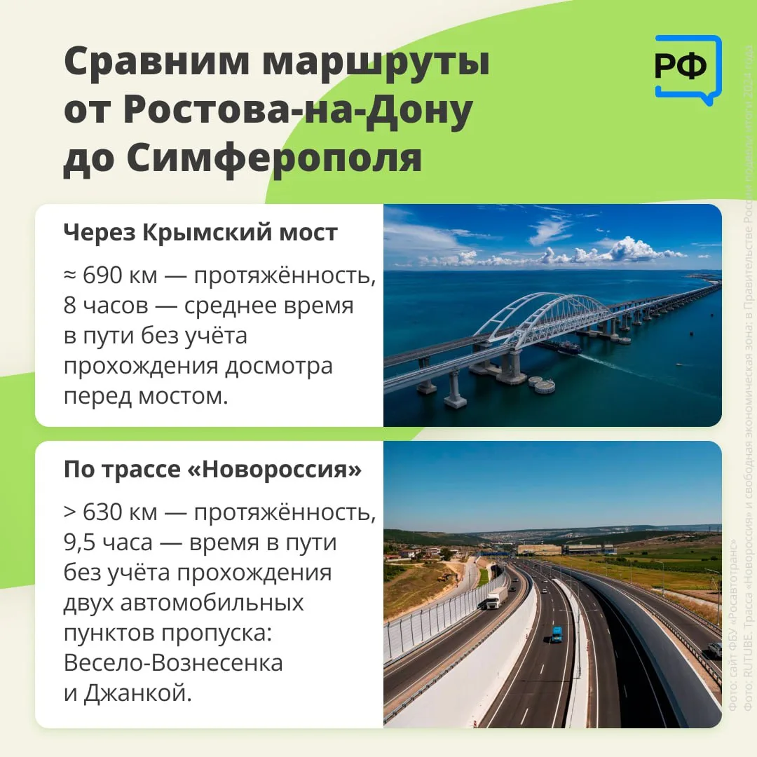 До Крыма на машине можно добираться по сухопутному коридору, который проходит по трассе Р-280 «Новороссия» Ростов-на-Дону — Мариуполь — Мелитополь — Симферополь.