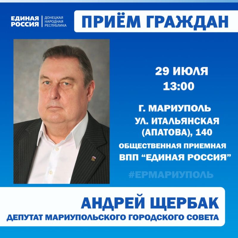 С 29 июля по 31 июля в 10:00 и 13:00, состоятся приёмы депутатов Мариупольского городского совета:29 июля - 13:00 - Андрей Щербак;31 июля - 10:00 - Виктор Секацкий;31 июля - 13:00 - Никита Аверкин.Записаться на приёмы и узнать подробную информацию...