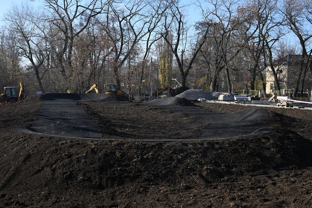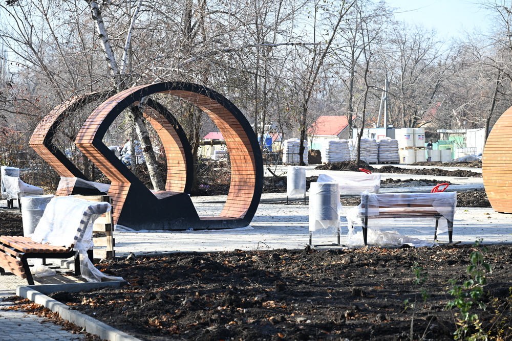 Мы завершаем устройство детских и спортивных зон, памп-трека. Также устанавливаем качели и арки с подсветкой. Разместили в парке три теннисных стола, продолжается монтаж спортивного оборудования.