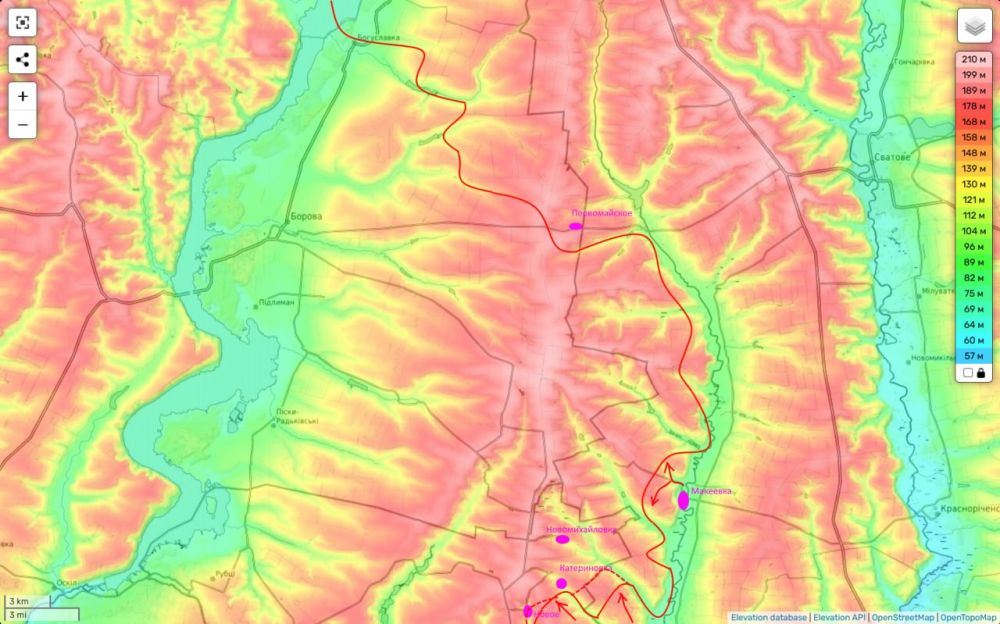 Наши части прямой сайчас уже ведут бои в Новом и Колодезях. И пытаются прорваться через Катериновку на Новомихайловку. И в случае успеха, фронт ВСУ здесь будет прорван, а гурппировка противника за Осколом еще раз рассечена.