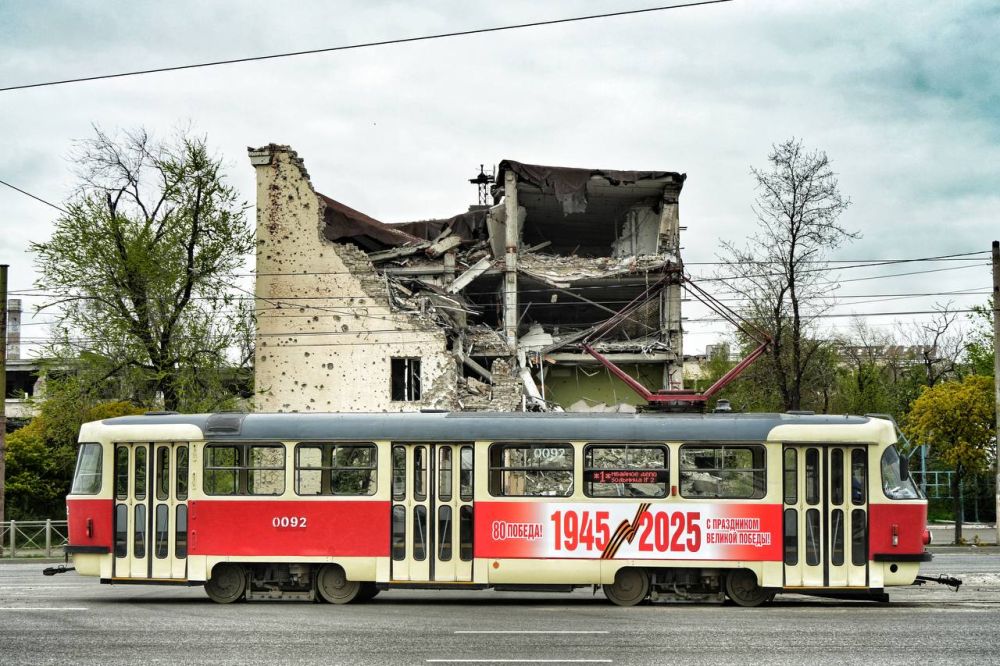 Множество мариупольских трамваев, как и сам город, украсили ко Дню Победы