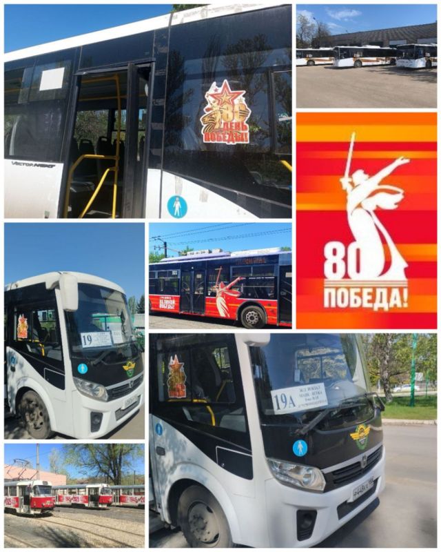 В рамках празднования 80-летия Победы в Великой Отечественной войне муниципальные предприятия "Донэлектроавтортанс" и "Мариупольтранс" украшают автобусы, троллейбусы и трамваи праздничной патриотической символикой.