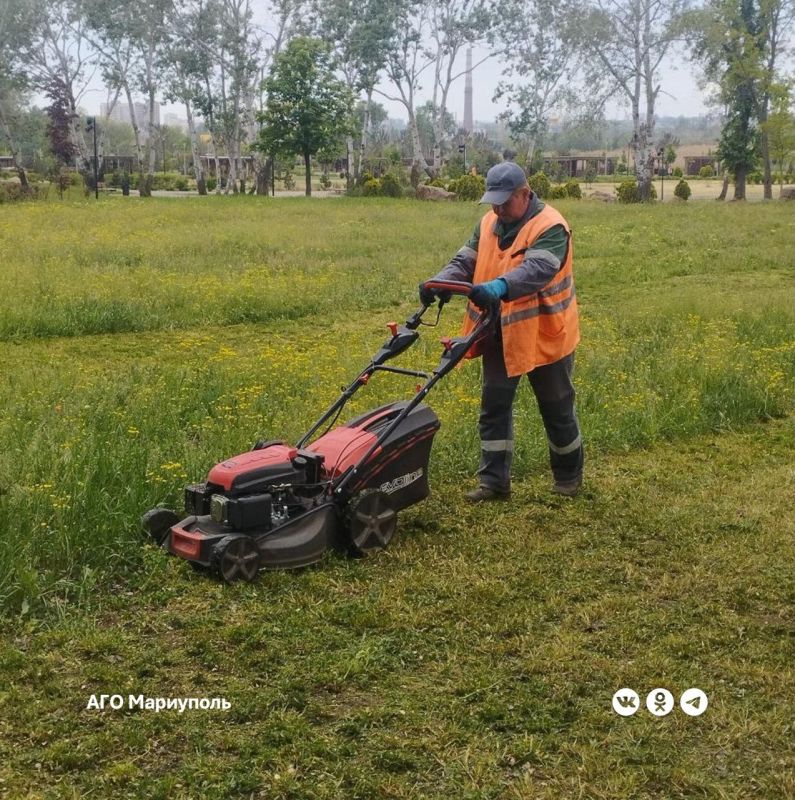 Сегодня в парке культуры и отдыха им. Гурова сотрудники МУП «Зеленстрой» ведут покос травы.