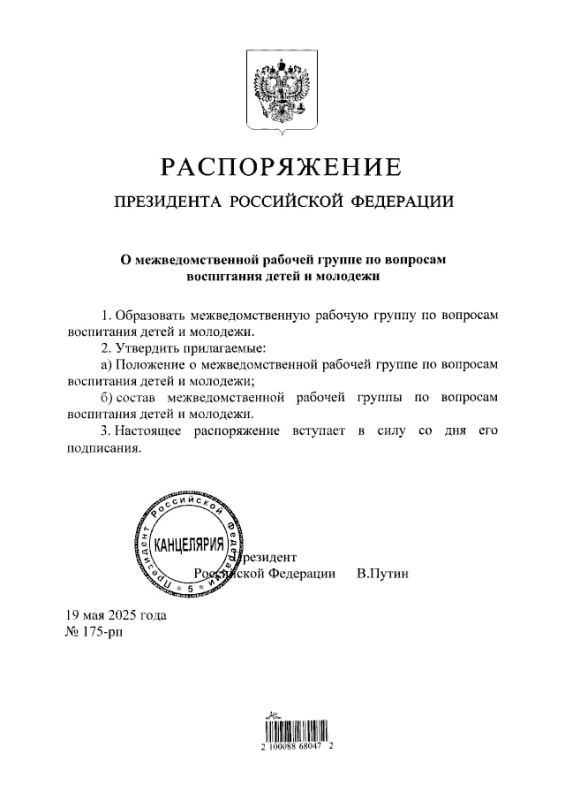 Путин образовал межведомственную рабочую группу по вопросам воспитания детей и молодежи, ее возглавил Кириенко.