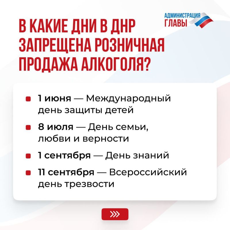 В ДНР установлены дни, когда розничная продажа алкогольной продукции запрещена. Для нарушителей предусмотрено наказание согласно закону ДНР № 91-РЗ.