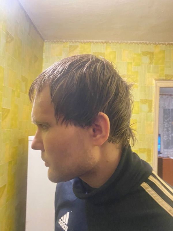 Приметы: на вид 30 лет, рост 172 см, среднего телосложения, светлые короткие волосы, голубые глаза. Может вести себя агрессивно.