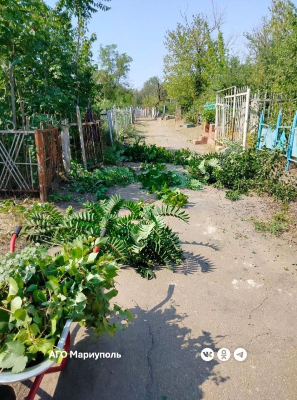 Коммунальщики продолжают благоустройство ритуальных мест Мариуполя