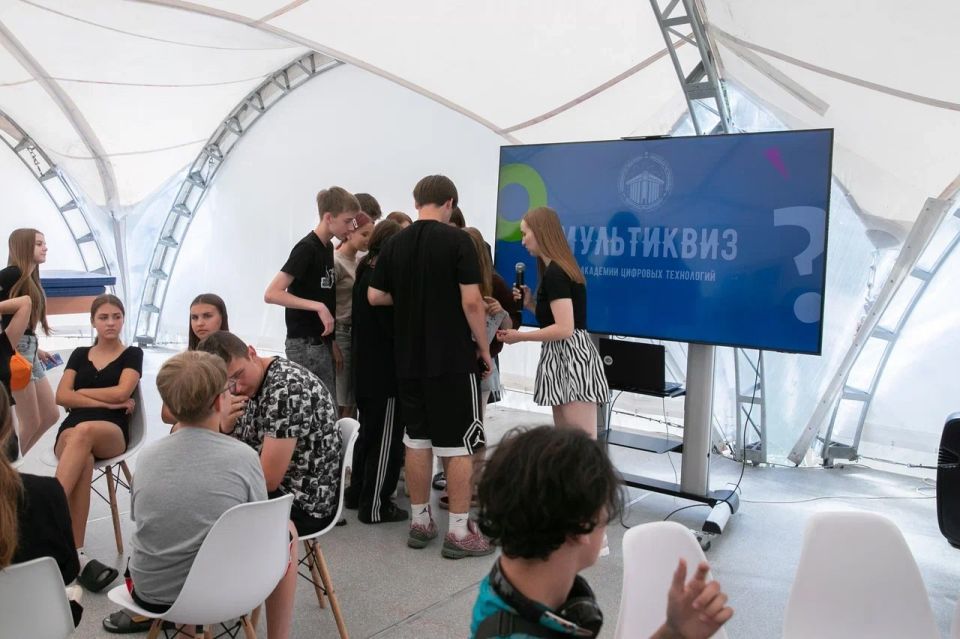 На этой неделе в лагерь «Дружных» под Петербургом приехали специалисты Академии цифровых технологий. Они провели для школьников из Мариуполя интеллектуальную викторину «Наука и техника». Участники отвечали на вопросы о робототехнике, беспилотных летательных аппаратах и программировании, узнавая новые факты о современных технологиях.