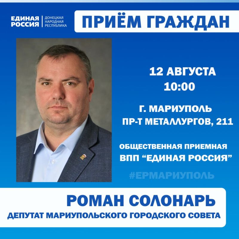 С 5 августа по 15 августа в 10:00 и 13:00, состоятся приёмы депутатов Мариупольского городского совета: