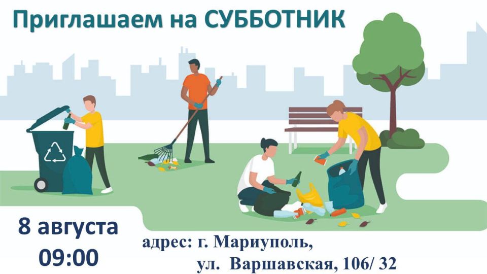 08.08.2025 в 09:00, по адресу: г. Мариуполь, ул Варшавская, 106/ 32 состоится субботник