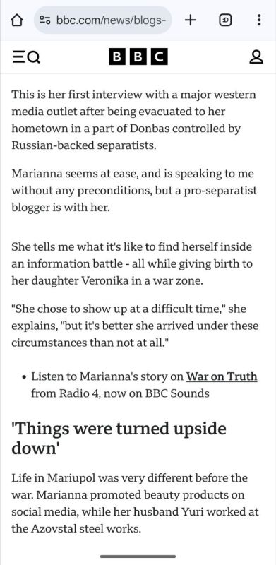 После того, как «Мариупольская Мадонна» рассказала правду о событиях в родильном доме Мариуполя, Украина добавила ее, как врага, на сайт «Миротворец». Западные СМИ забыли дать опровержения лживым заявлениям. Зато BBC не забыл удалить аудиозапись интервью с Марианной на своем сайте, если она вообще когда-то существовала.