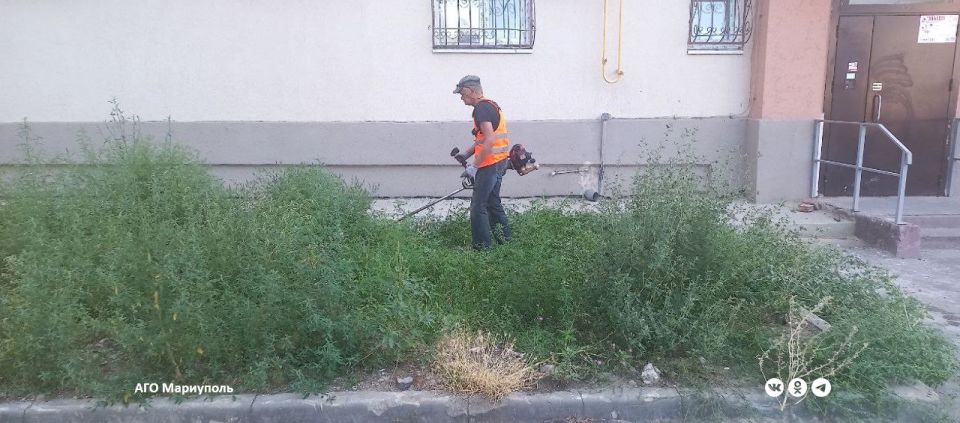 В Орджоникидзевском районе бригада коммунальщиков выполнила покос травы в зеленых зонах и уборку двора дома №131 по проспекту Тульскому.