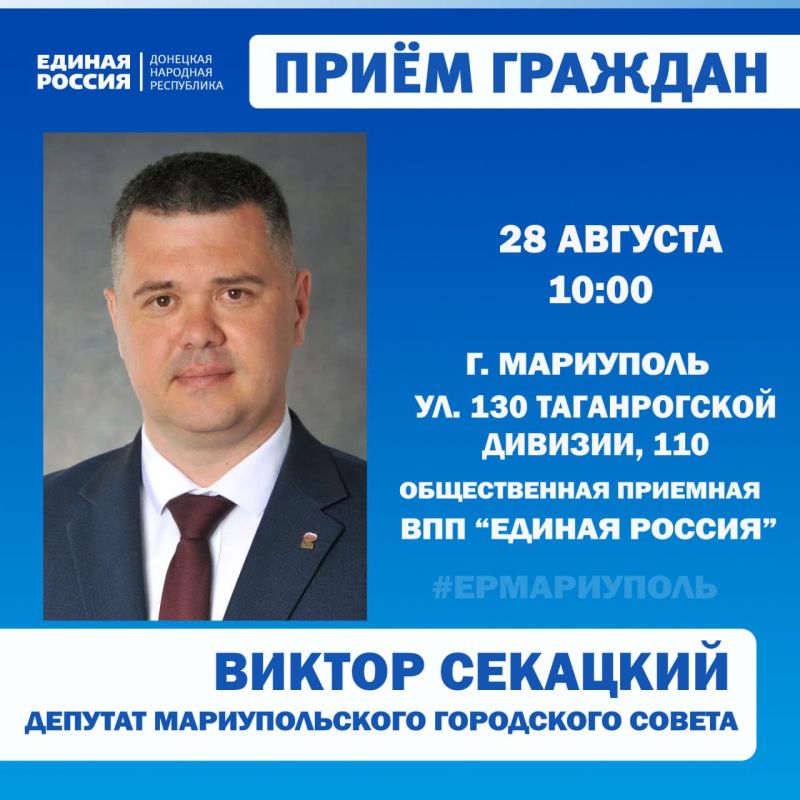 С 19 августа по 29 августа в 10:00 и 13:00, состоятся приёмы депутатов Мариупольского городского совета и руководителей управ внутригородских районов: