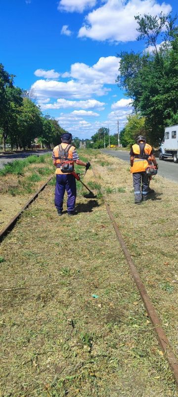 Мариупольтранс: Сотрудники службы по обслуживанию и ремонту пути МУП «МАРИУПОЛЬТРАНС» произвели покос травы общей площадью 33 900 м2