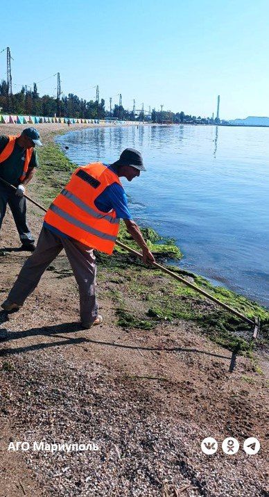 Мариупольские коммунальщики очищают прибрежные зоны от растительного мусора