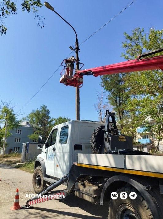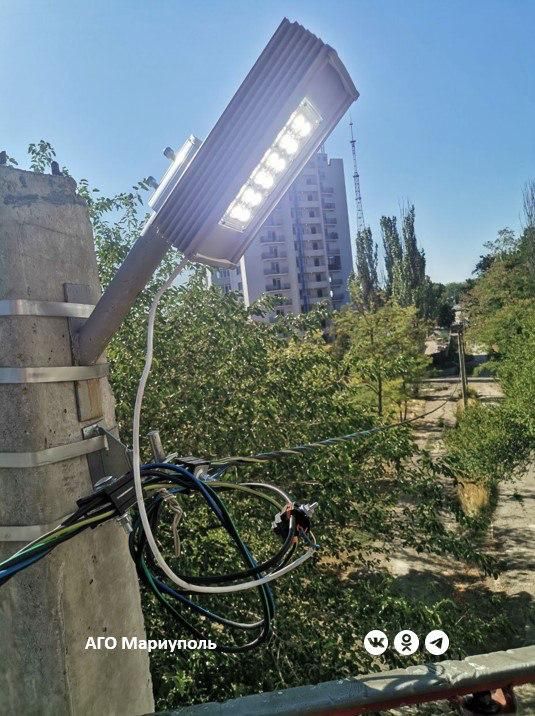 Специалисты МУП «Мариупольгорсвет» смонтировали и отремонтировали 5 669 метров кабеля, установили 190 новых светильников, демонтировали 1 367 метров неремонтопригодного провода и 74 вышедших из строя фонаря.