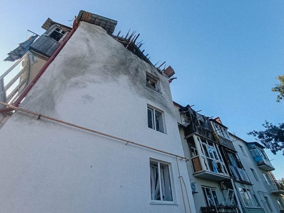 Принимаем меры по ликвидации последствий падения беспилотника в Ильичевском районе. В трехэтажном многоквартирном доме частично повреждена кровля, в некоторых квартирах - остекление, во дворе - припаркованные автомобили.