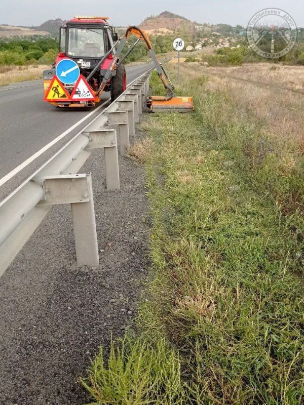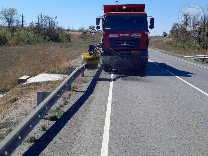 В ежедневном режиме под контролем Службы автомобильных дорог Донбасса работники подрядной организации продолжили покос травы в полосе отвода, вырубку кустарника, уборку мусора на территории дорог, пунктах пропуска и остановочных пунктах.
