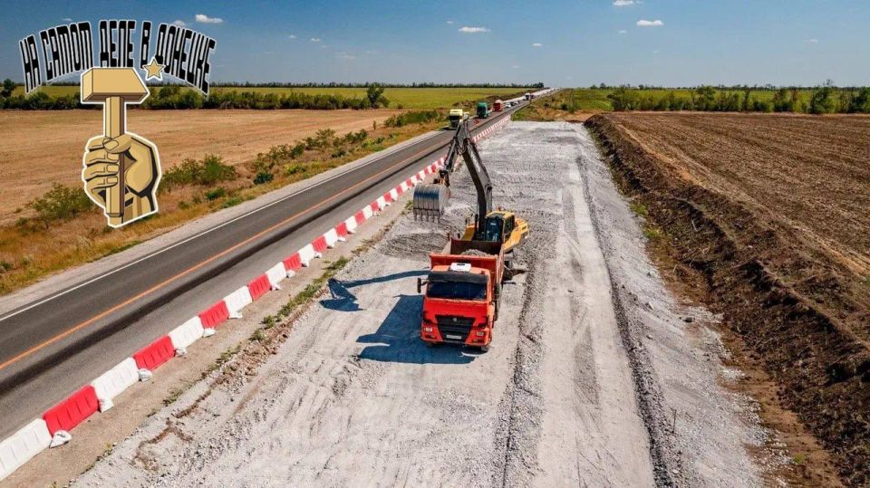 На ряде участков уже началось устройство основания дороги и первых слоёв асфальта. Идёт капремонт более 35 км дороги от Мариуполя до Бердянска: её расширяют до 4 полос.